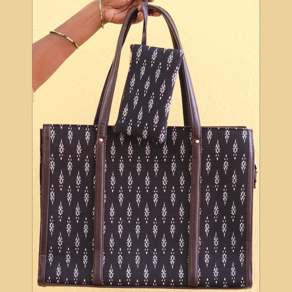 All Purpose Tote- Teachers Tote | Stylish Office & Travel Bag for Women – Black Ikkat