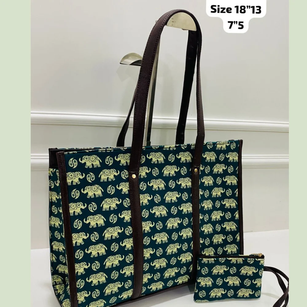 Its elegant printed design adds a fashionable touch, making it suitable for both casual and professional settings. The included mini pouch helps keep smaller items neatly organized.