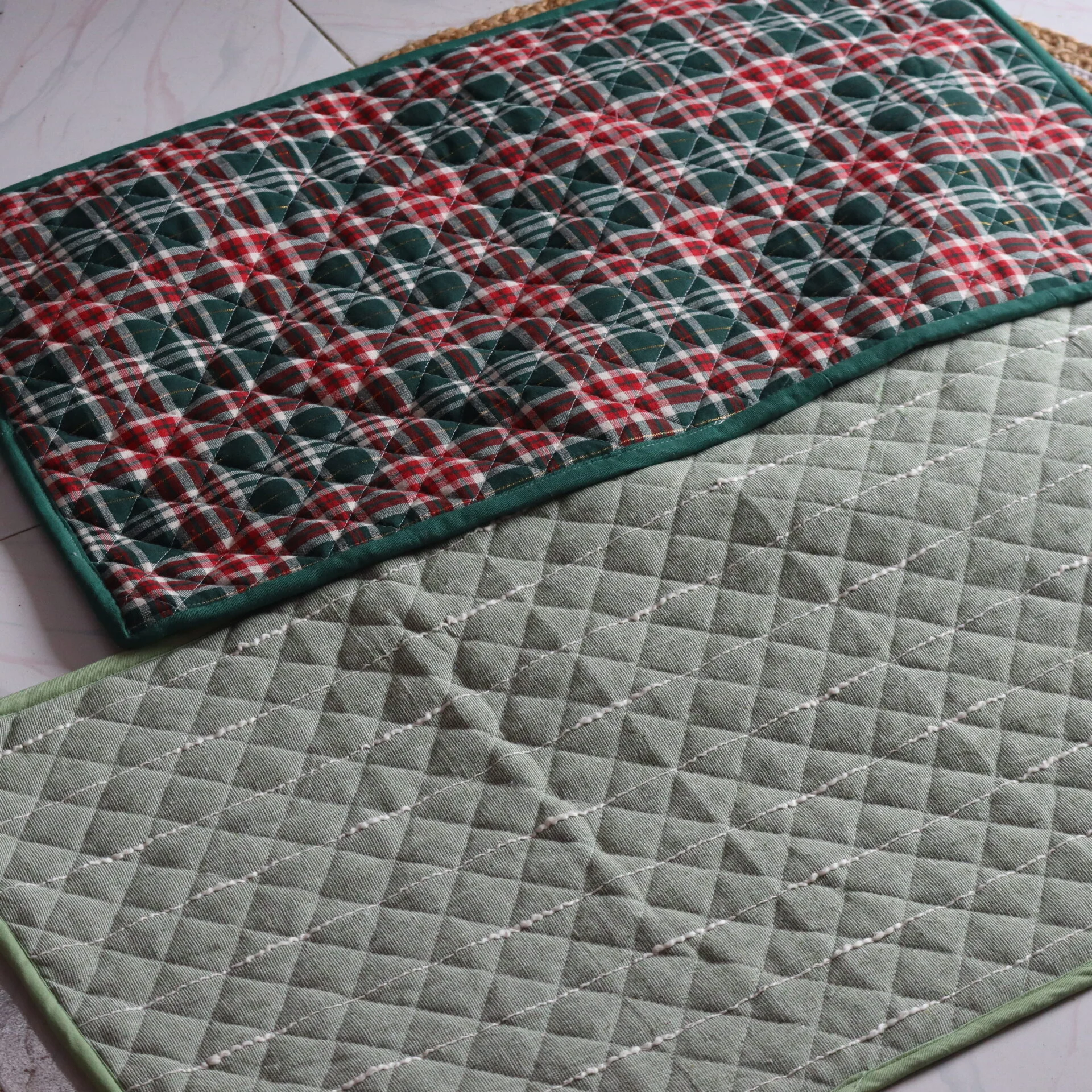 Transform your home with our Cushion Combo Mats & Runner Set — a perfect blend of style, comfort, and functionality. Crafted from premium quilted fabric, these mats are machine washable, water absorbent, and designed to last. The cushioning adds aesthetic charm to your kitchen or entryway but also provides heel pain relief and comfort for long standing hours.