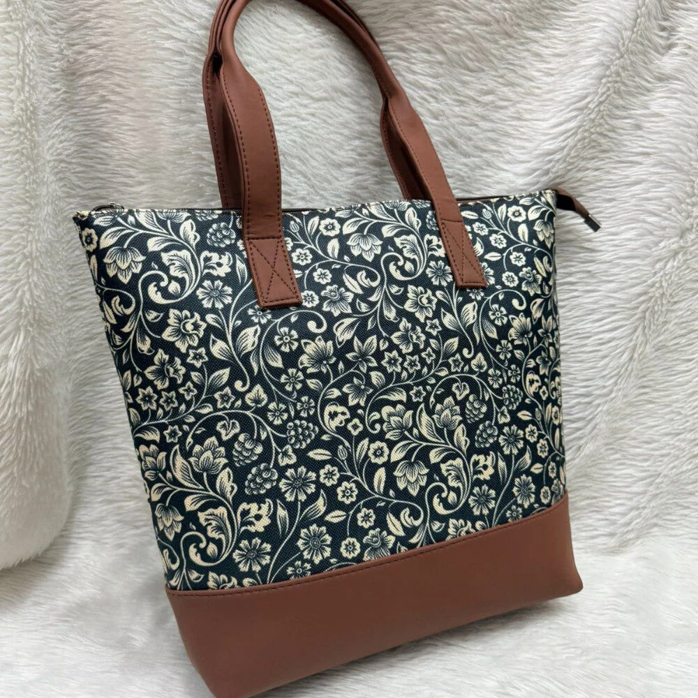 Everyday Tote add a touch of art and sustainability to your everyday style with this 16-inch handcrafted jute tote bag. Designed for eco-conscious fashion lovers, this bag is made from premium jute fabric with elegant floral and paisley prints, paired with vegan leather handles for durability and comfort.