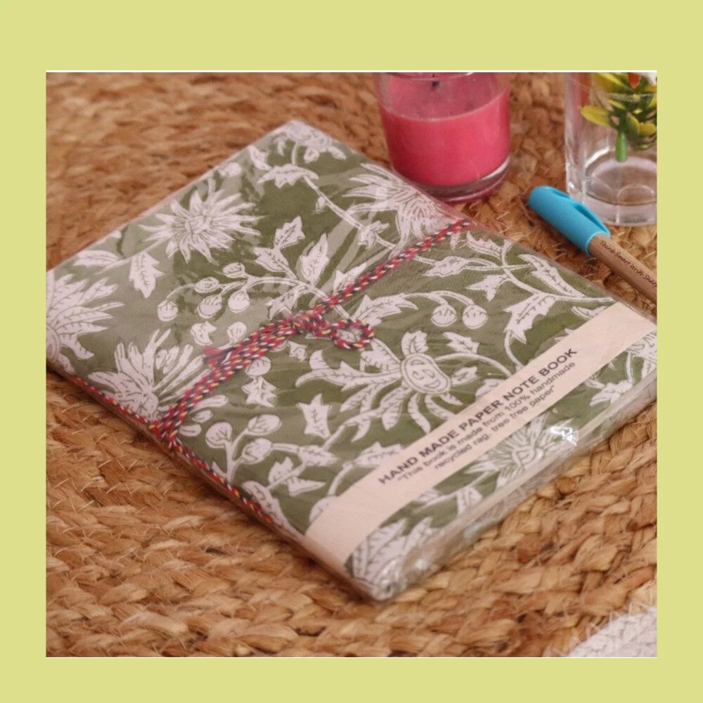 Wrapped in hand‑block printed cotton or traditional motifs (such as Sanganeri, Kalamkari, Bagh or Ajrakh styles), each cover is one‑of‑a‑kind. The dyeing and block printing techniques—like Dabu resist or Sanganeri prints—are deeply rooted in India’s craft heritage. - Sturdy Hand‑Stitched Binding