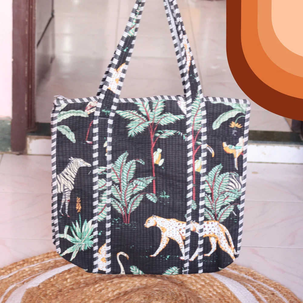 Modern Kattapai Washable Tote Bag for Women | Multifunctional Fabric Shoulder Bag | Aesthetic Floral College & Everyday Carry Bag- Jungle