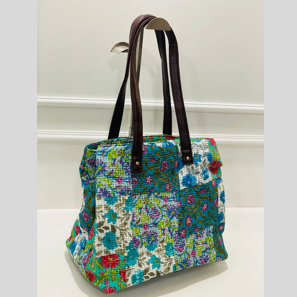 Made from durable, soft quilted fabric, it’s lightweight, foldable, and completely washable, making it ideal for hospital use, day trips, or baby travel. The stylish blue floral design is paired with reinforced faux leather handles for added strength and easy carrying.