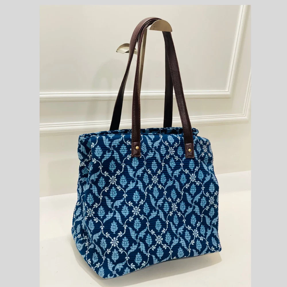 Made from durable, soft quilted fabric, it’s lightweight, foldable, and completely washable, making it ideal for hospital use, day trips, or baby travel. The stylish blue floral design is paired with reinforced faux leather handles for added strength and easy carrying.