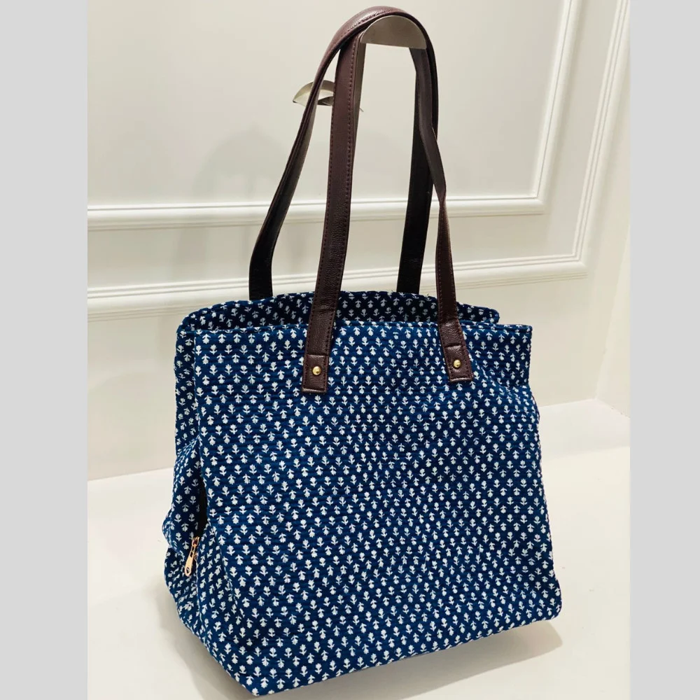 Made from durable, soft quilted fabric, it’s lightweight, foldable, and completely washable, making it ideal for hospital use, day trips, or baby travel. The stylish blue floral design is paired with reinforced faux leather handles for added strength and easy carrying.